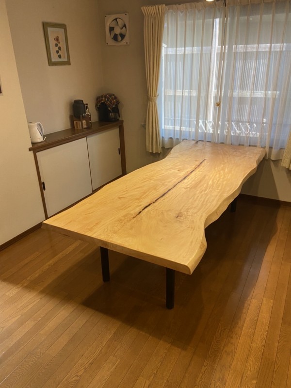 滋賀県東近江市のお客様宅へ2500幅の栃一枚板をお届けしました^ ^