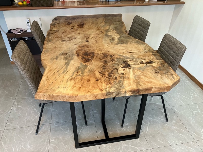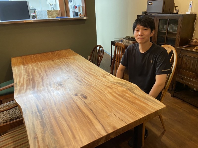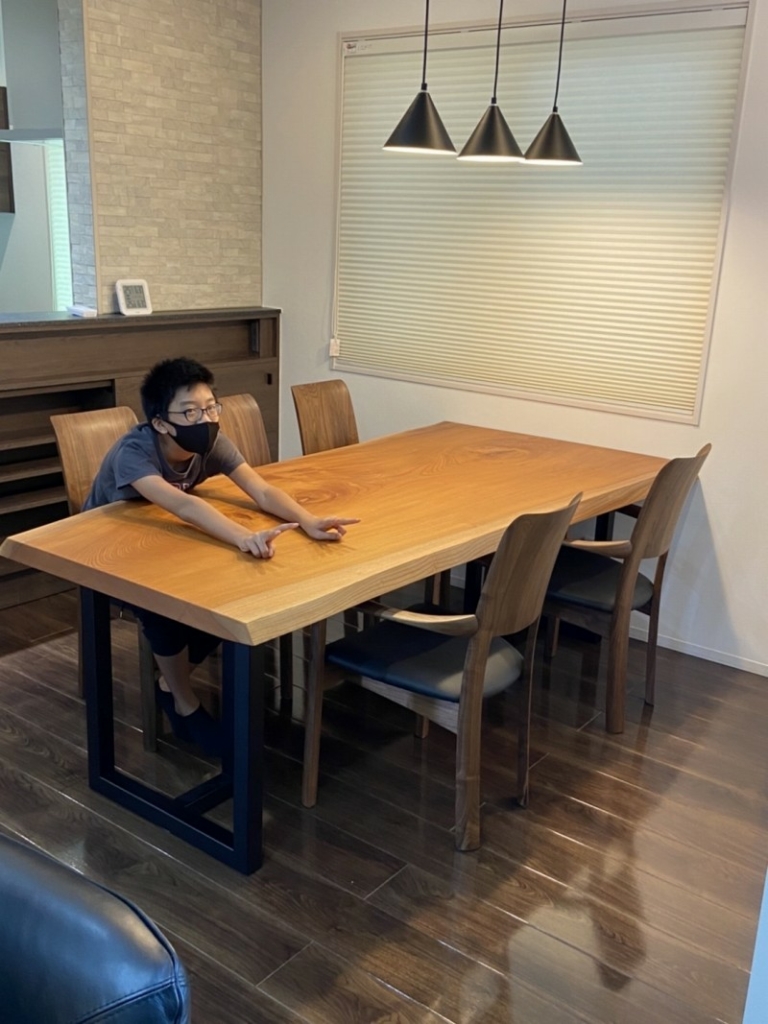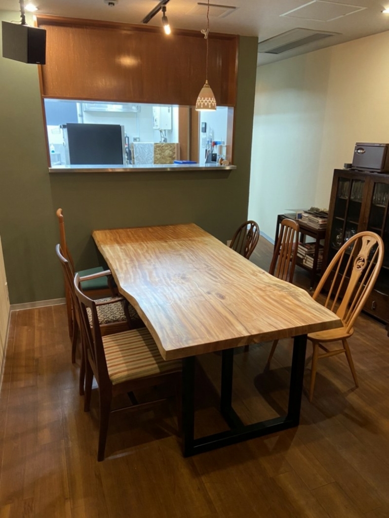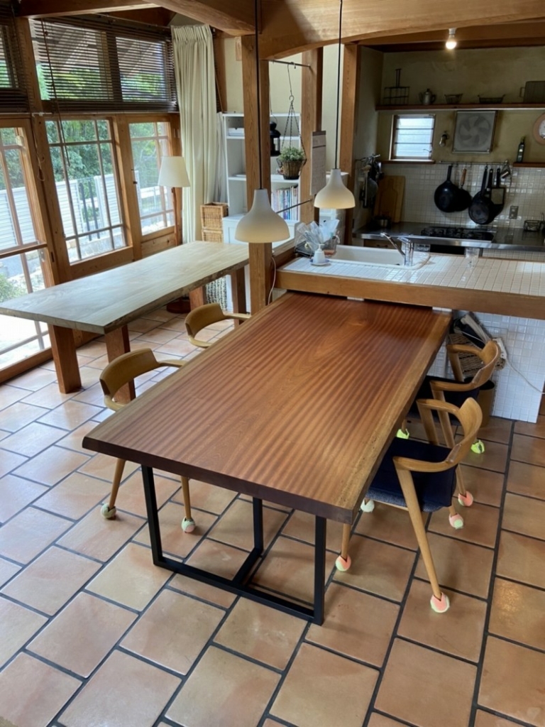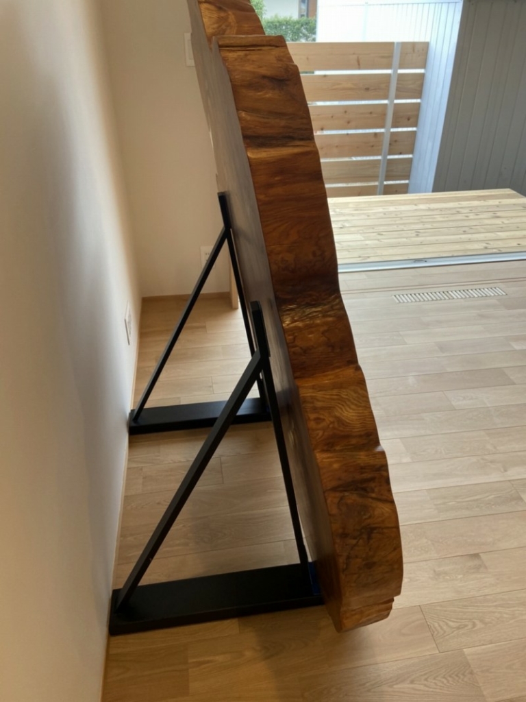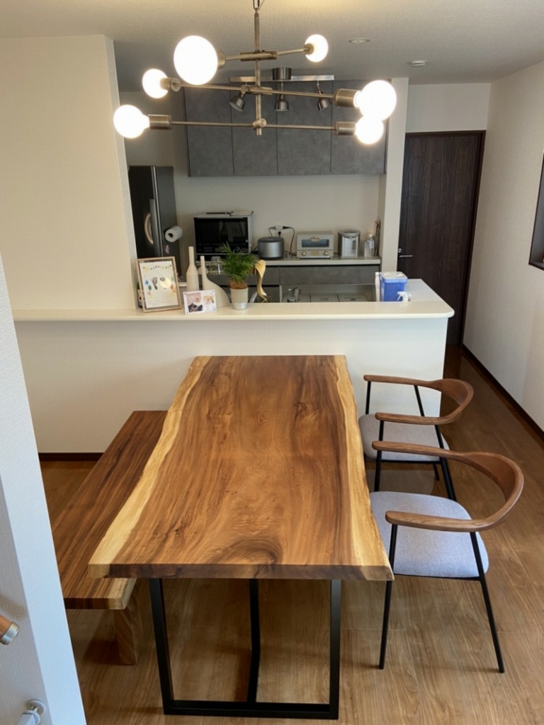 ご近所の東住吉区のお客様宅へケヤキ一枚板、アイアン脚、ダイニングチェアをお届けしました^ ^