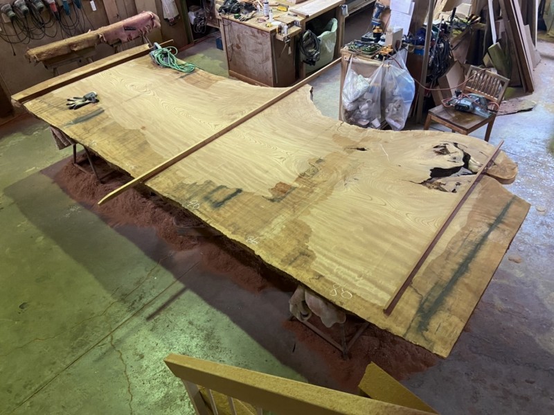 以前に購入した4m超え、奥行き約2m、厚み約10cmの、欅一枚板!!