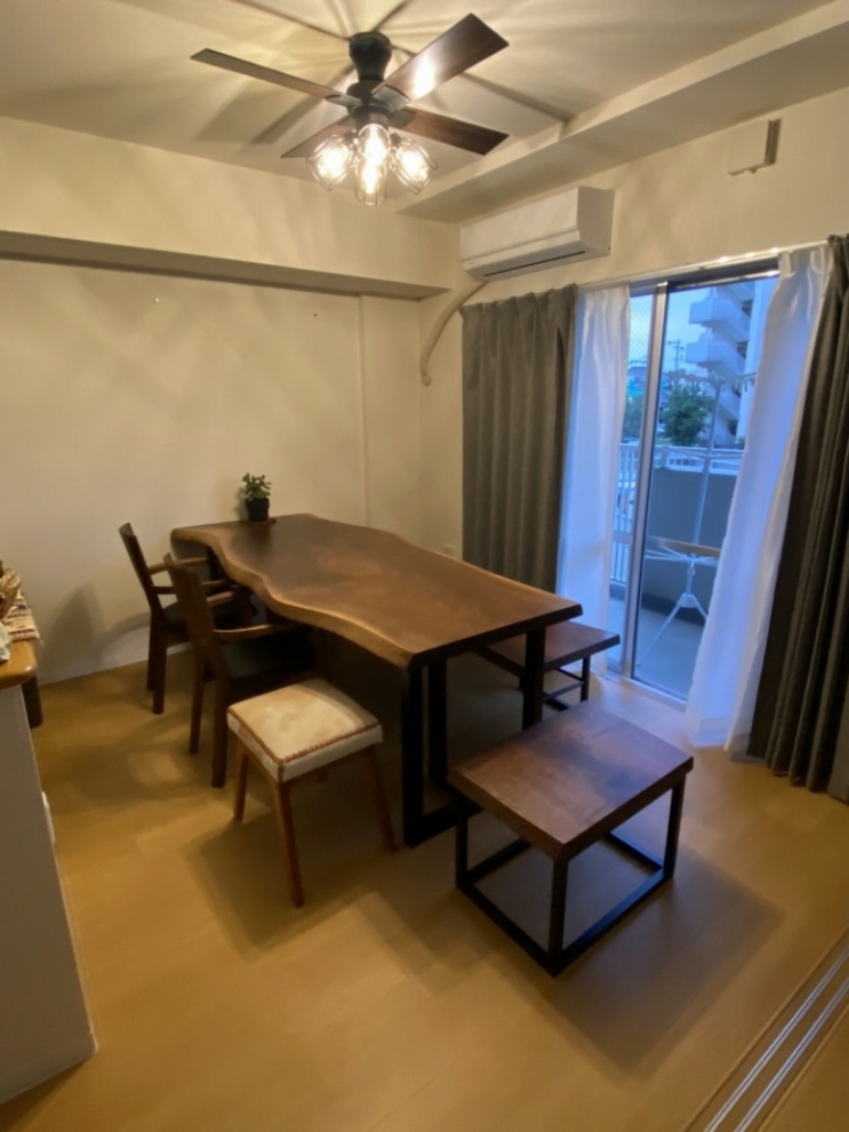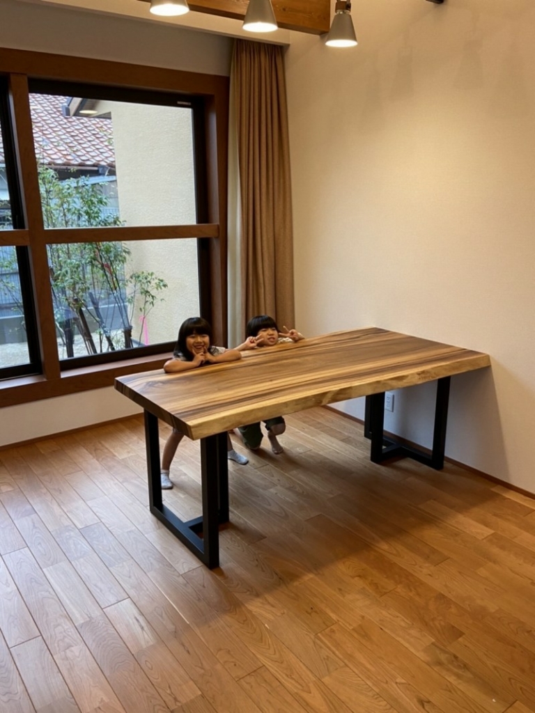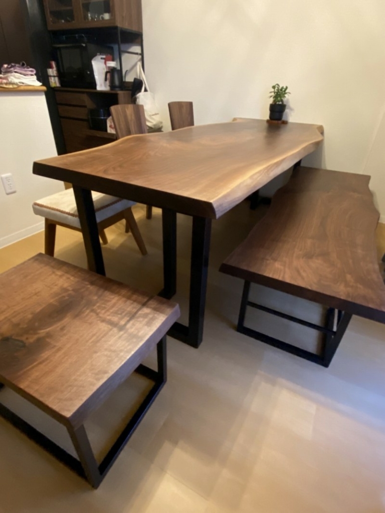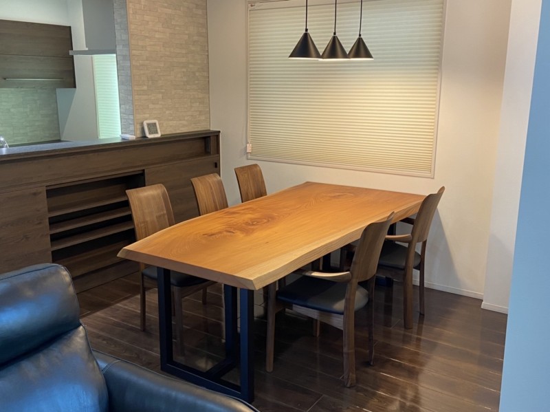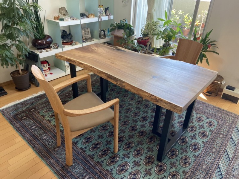 八尾市のお客様宅へクルミの一枚板ダイニングテーブルとオーク材のダイニングチェアーをお届けしました^ ^