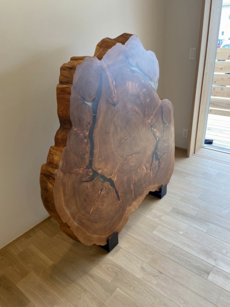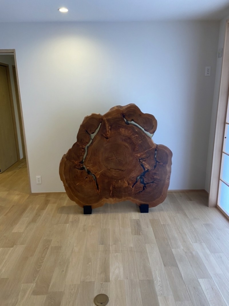 以前にお家にも一枚板を入れさせて頂いて喜んで頂いたのですが今回も更に喜んで頂きました^ ^