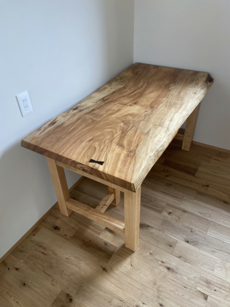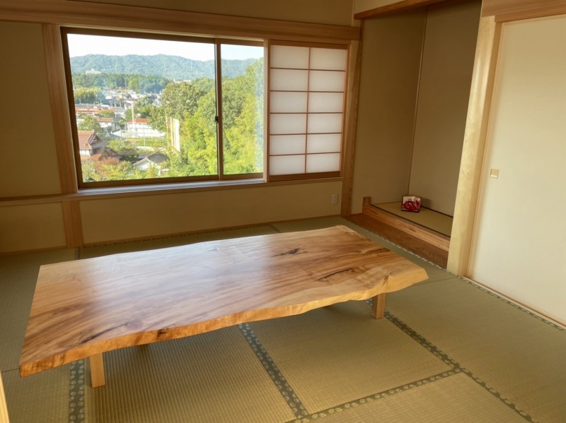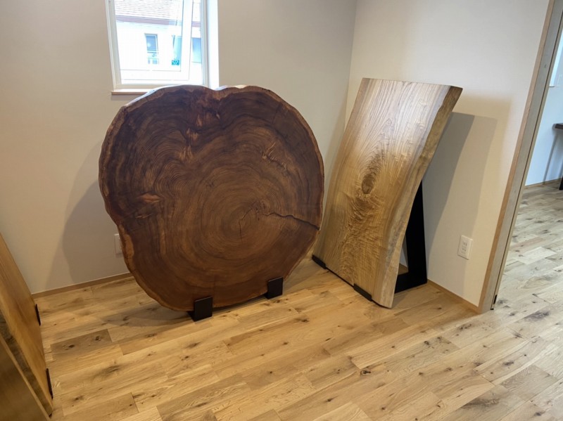栃一枚板(カウンター用)と栃一枚板座敷机、脚も栃のオーダー品です。