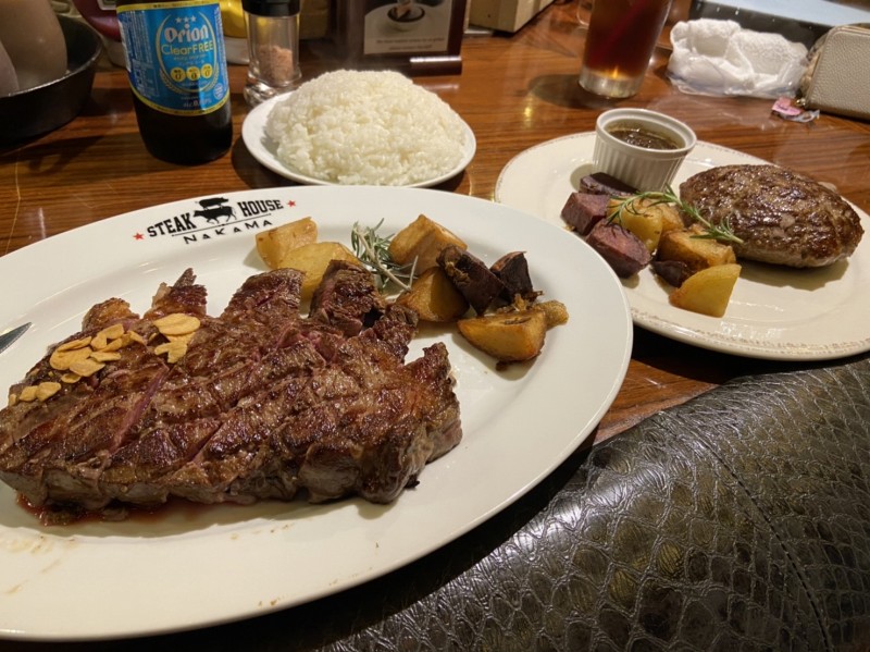 夜は毎度の1ポンドステーキと300g ハンバーグ(๑>◡<๑)