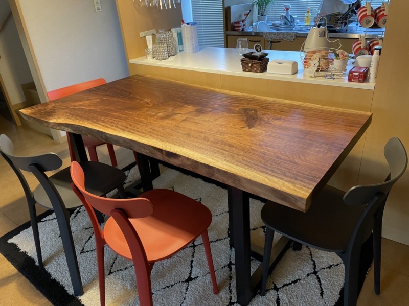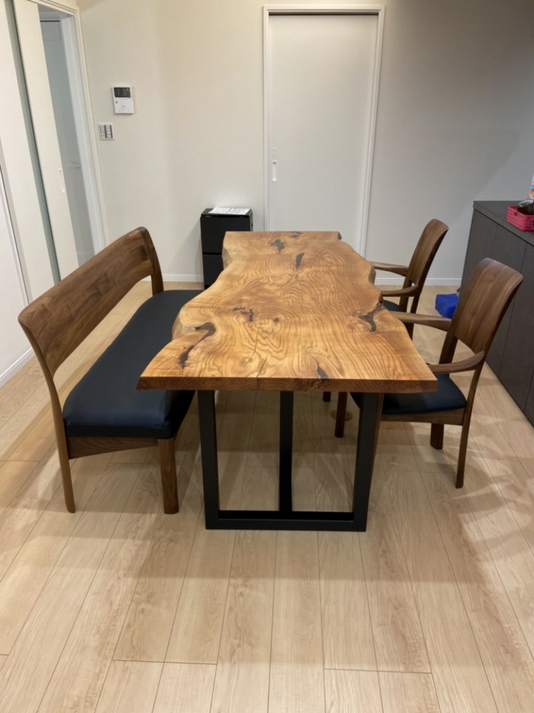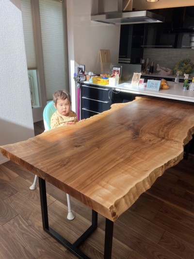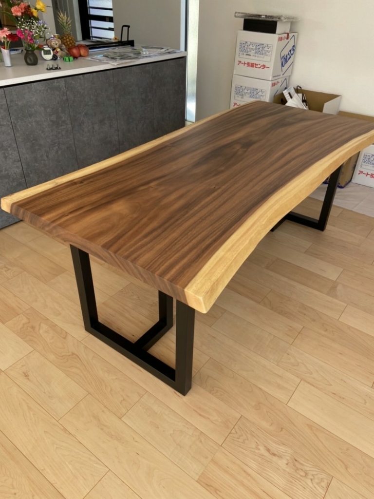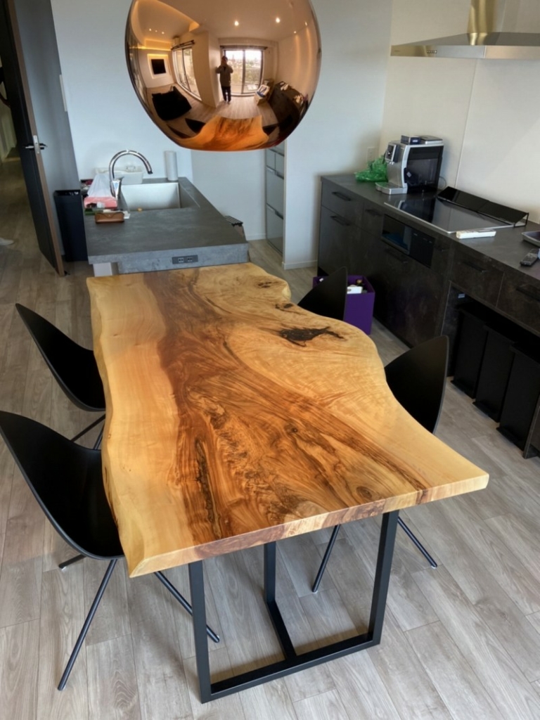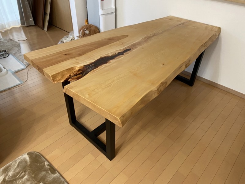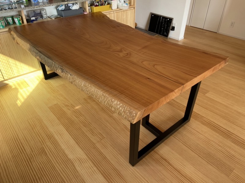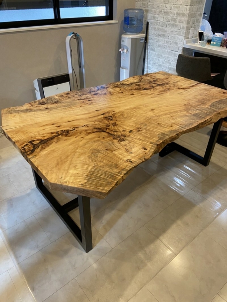 栃の一枚板とアイアン脚です。入荷したばかりの栃ですぐにお決め頂きました^ ^