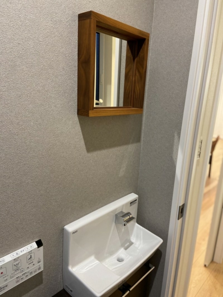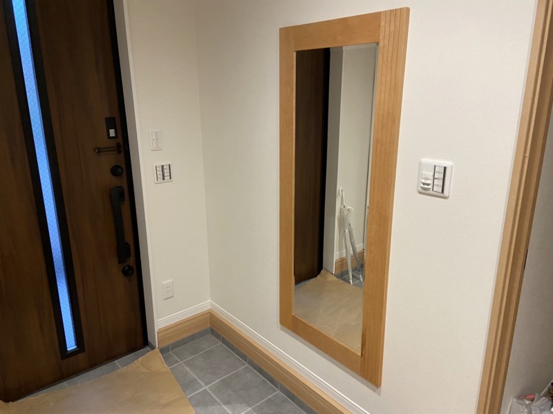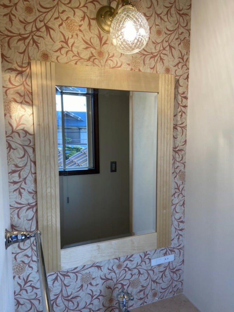 玄関用とトイレ用のオリジナルミラーを壁面に取り付けさせて頂きました