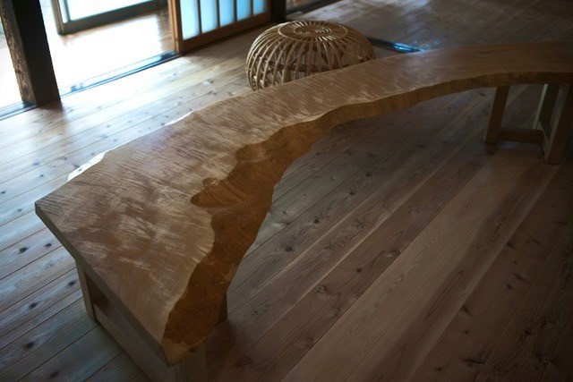 1800幅で奥行が1m以上あるボリュームのあるワイルドな木目のほかです。