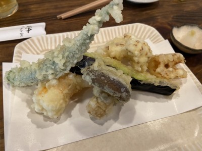 2時過ぎになのに並んでました天ぷらとそば、痛風がこわいですが白子の沖漬けをオーダー