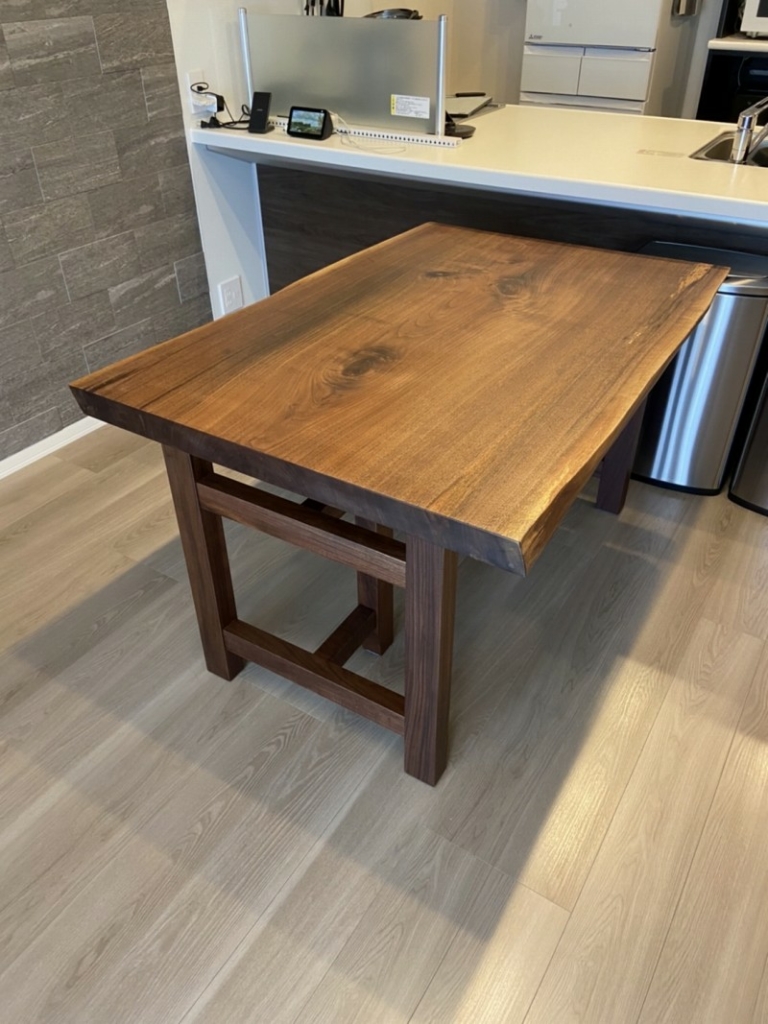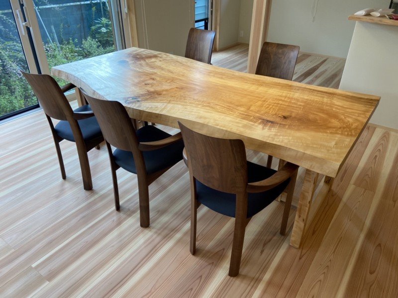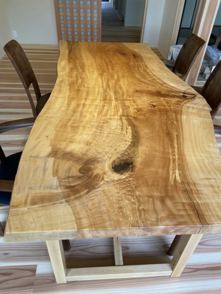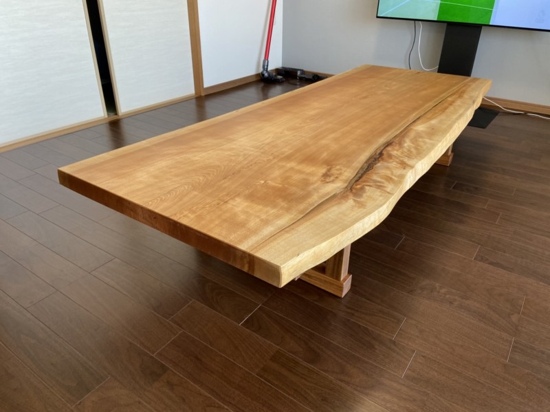 今は座卓としてお使いですが将来ダイニングテーブルにするかもと脚は栃の兼用脚でお作りしました。