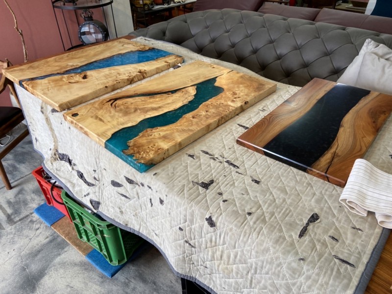 後は3Fに上げさせて頂いた楠の輪切り一枚板の脚の仕上がり(乾燥)待ちですね。もう少しお待ち下さい^ ^
