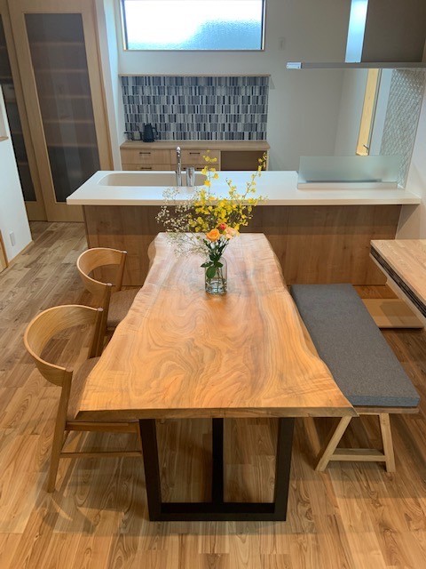 富田林市に1800幅のモンキーポット一枚板のダイニングセットをお届けしました^ ^