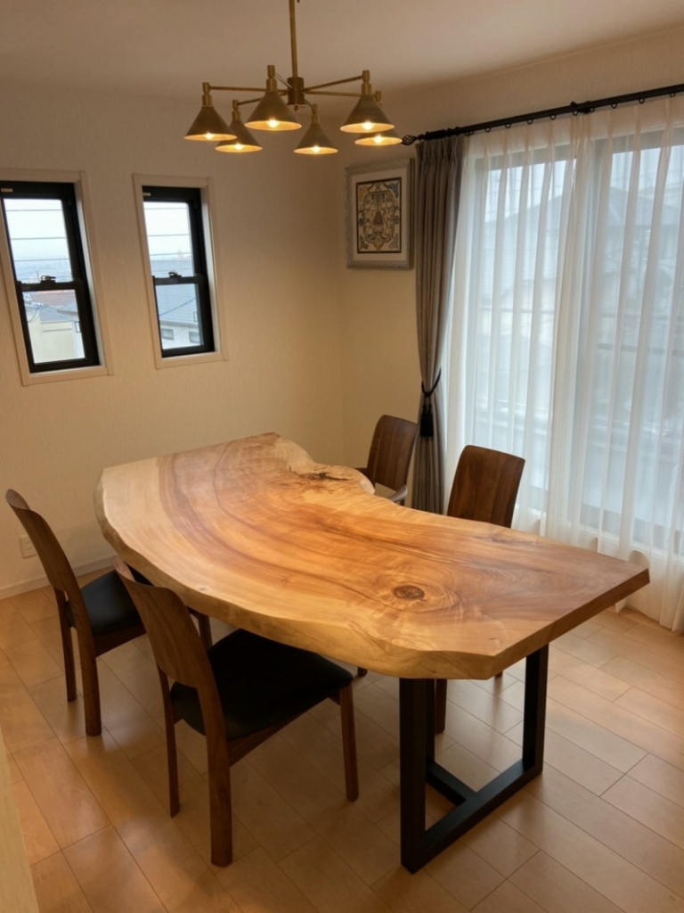 宝塚市に栃の一枚板ダイニングテーブルをお届けしました^ ^