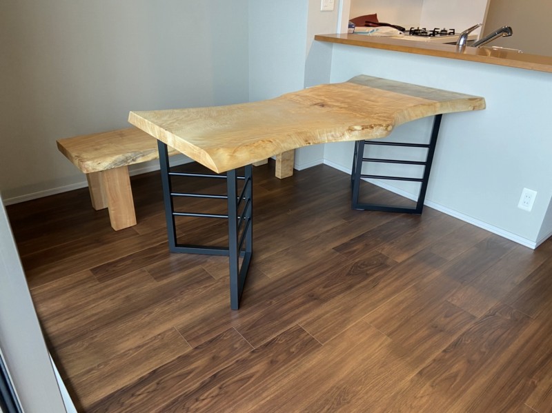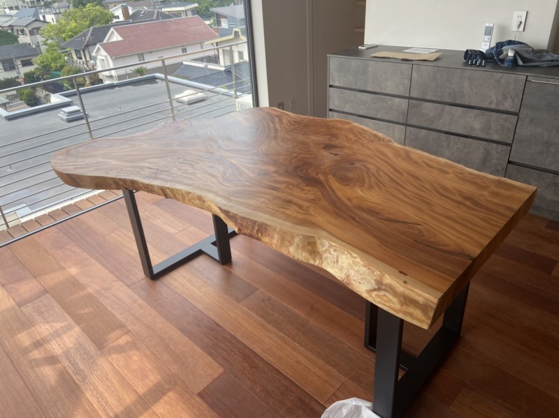 栃の一枚板とアイアン脚をお届けしました^ ^