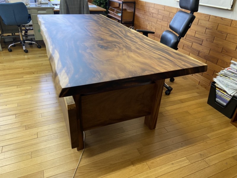 大阪市平野区の会社にモンキーポット一枚板の社長デスクをお届けしました^ ^