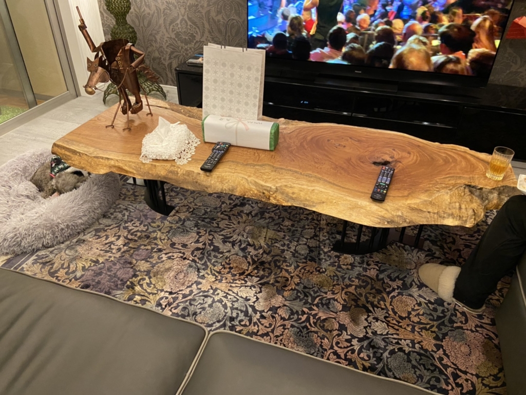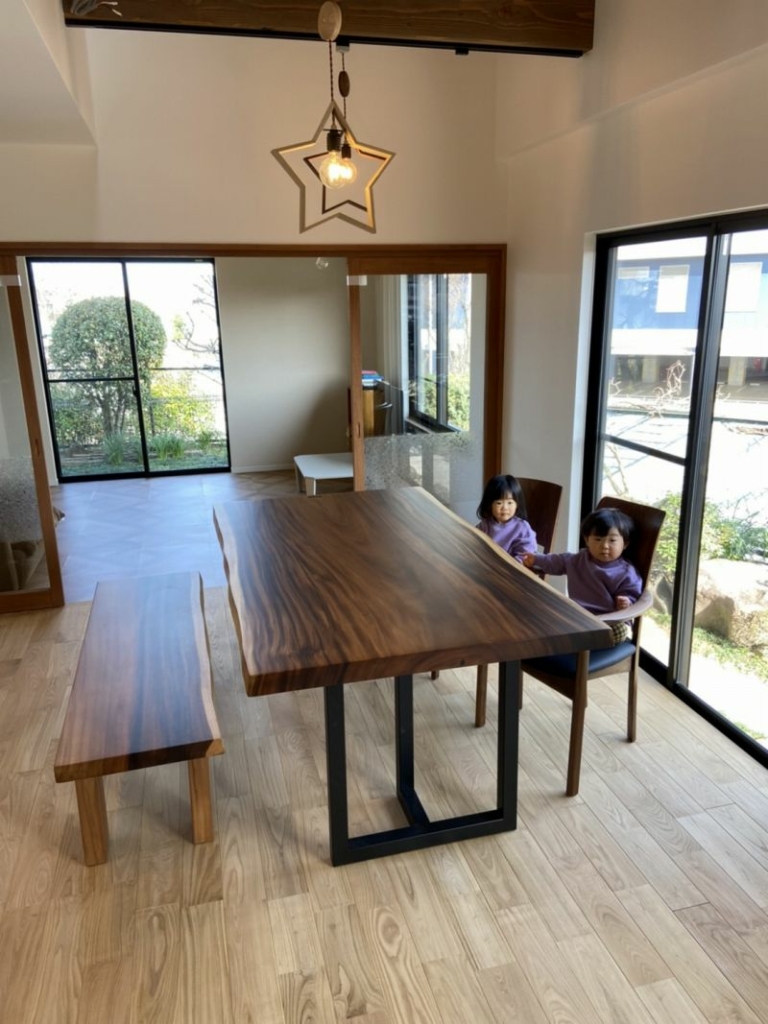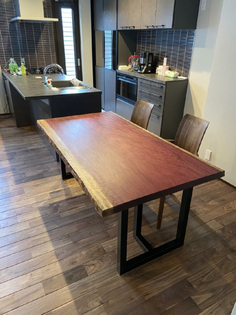 奈良県生駒市に2mのボセ(アフリカンチェリー)一枚板のダイニングテーブルをお届けしました^ ^