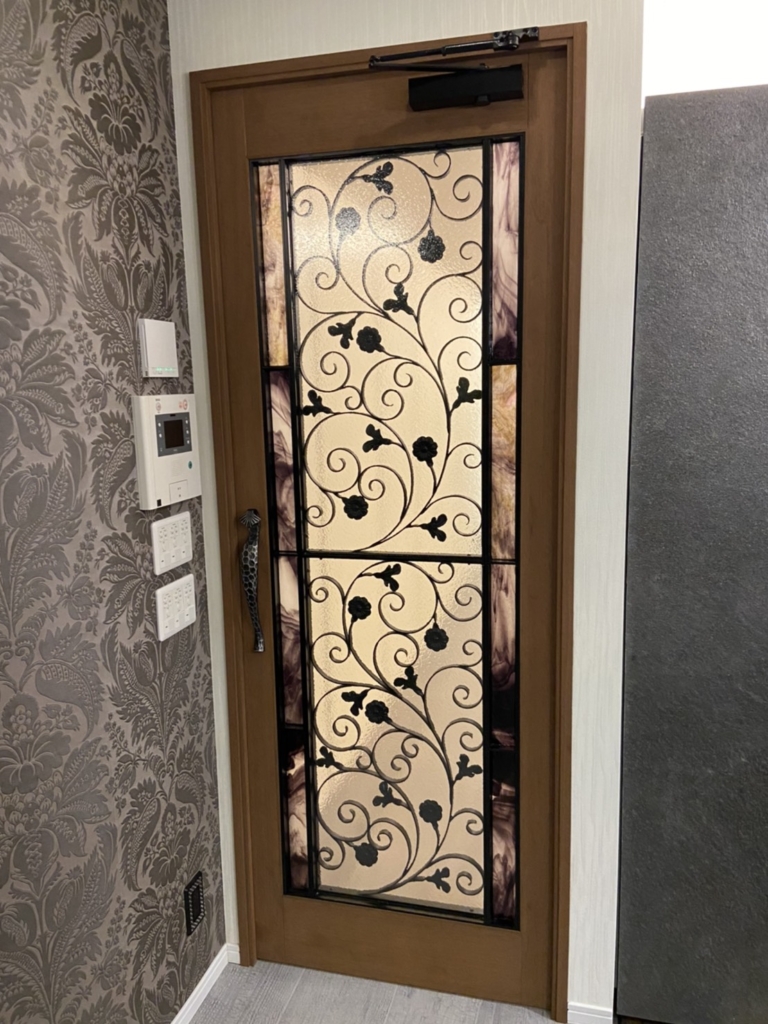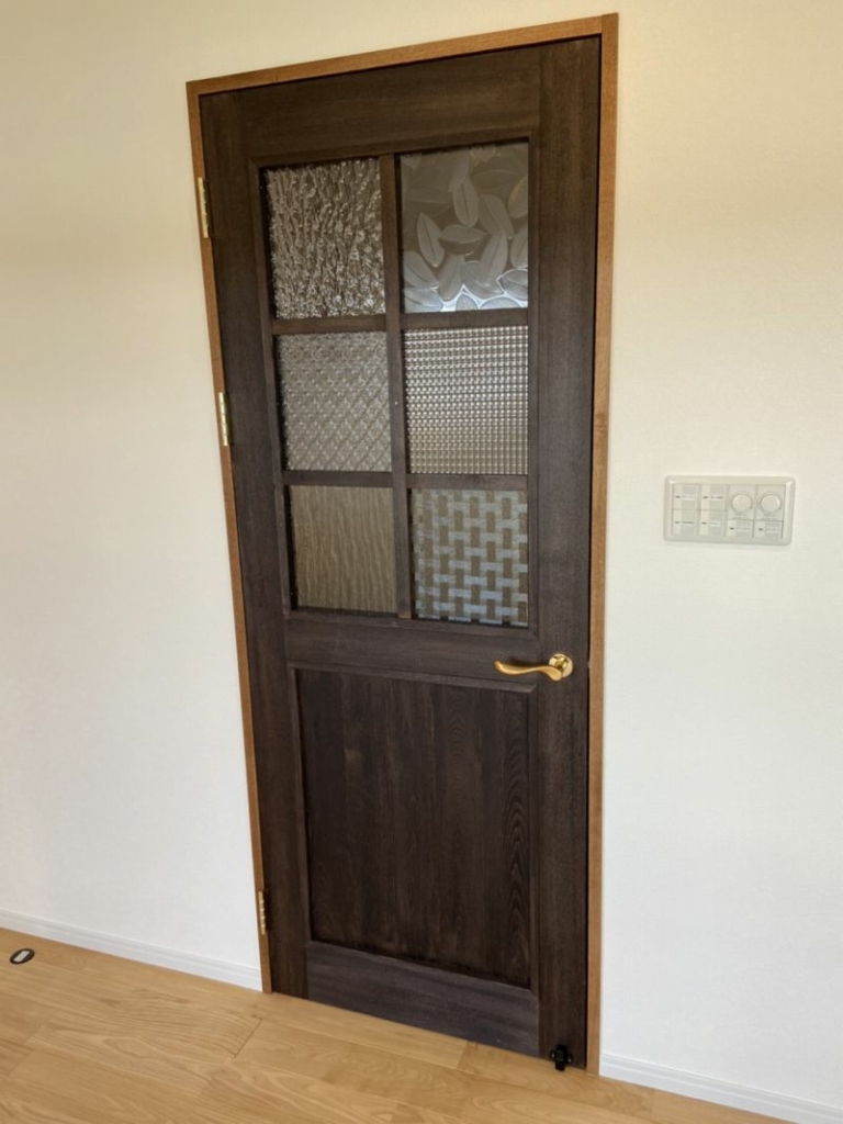 こちらのお宅は奥様が色々探されて扉のステンドもオリジナル又、私が切ったモンキーの切れ端も綺麗に大工さんにかべにはめてもらってます