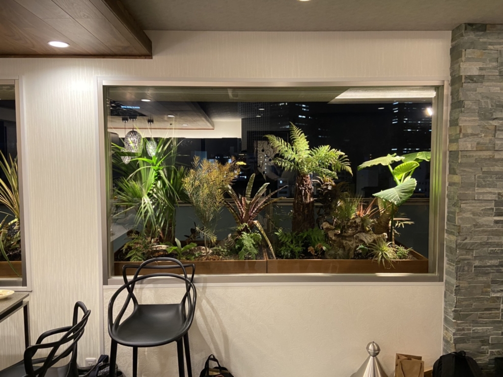 そしてライトアップされた植物が夜景と凄く綺麗にマッチしていますね