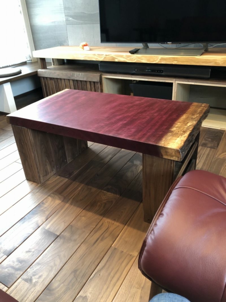 パープルハートのお客様より取り忘れてましたカットしたセンターテーブルの写真を送って頂きました^ ^