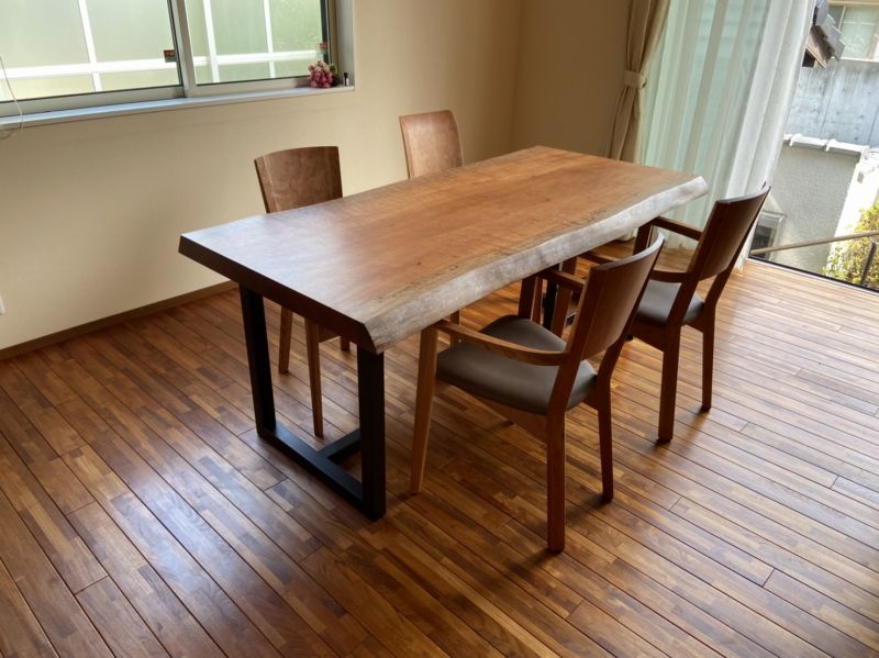 滋賀県大津にモアビ(南洋桜)一枚板、ブラックチェリー材のダイニングチェアx4脚をお届けしました^ ^