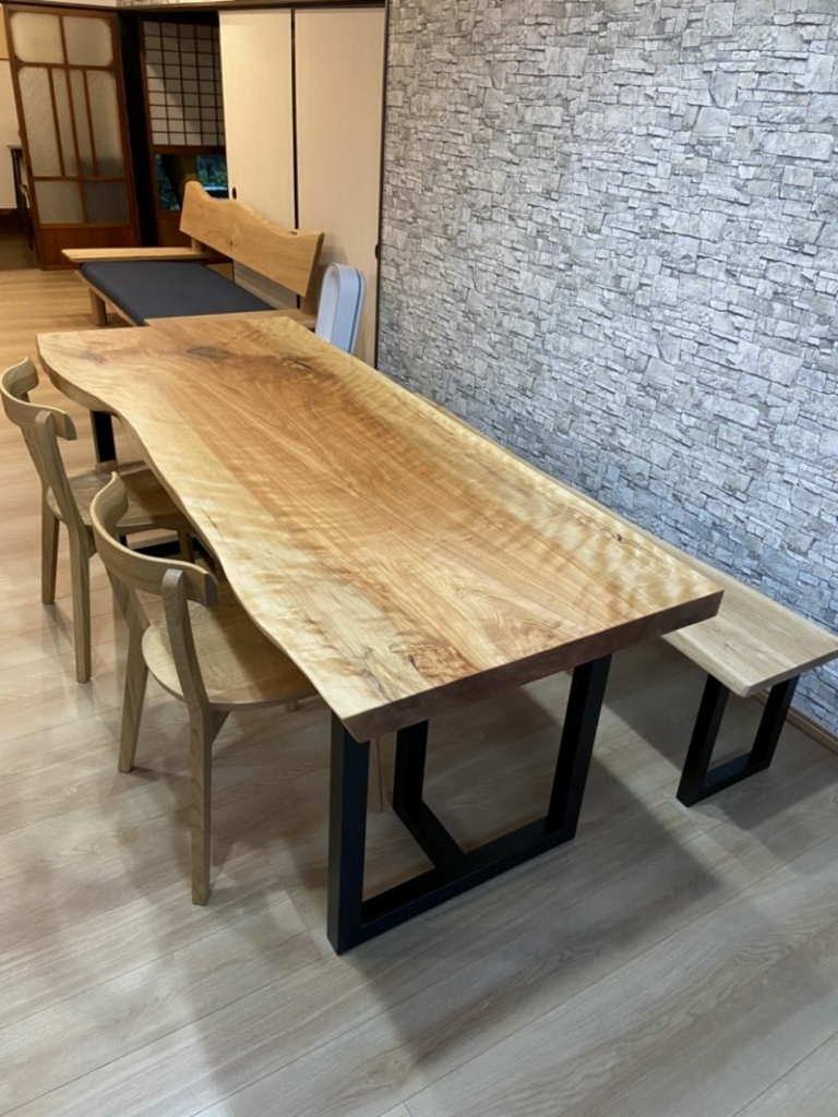 和泉市にモンキーポット一枚板テーブルとベンチをお届けしました^ ^
