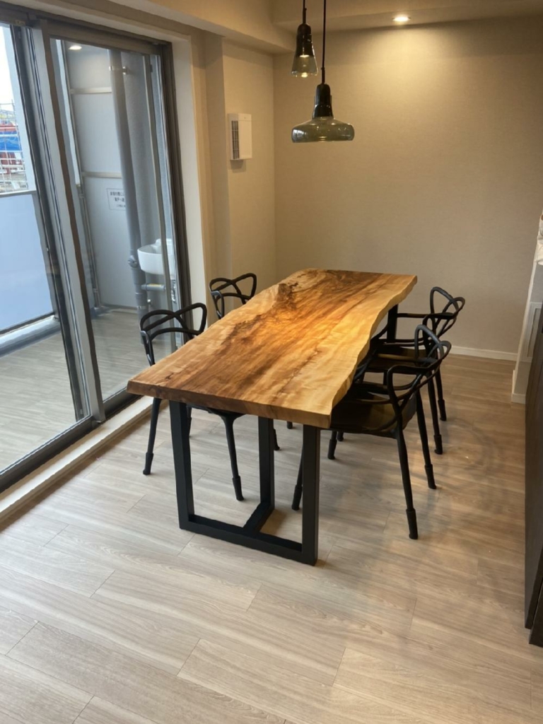 大阪市旭区に樺桜一枚板と、アイアン脚をお届けしました^ ^