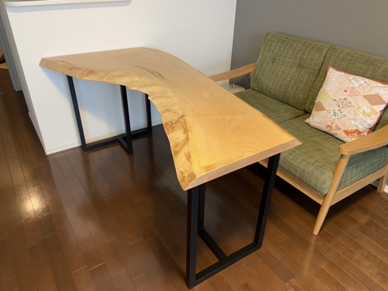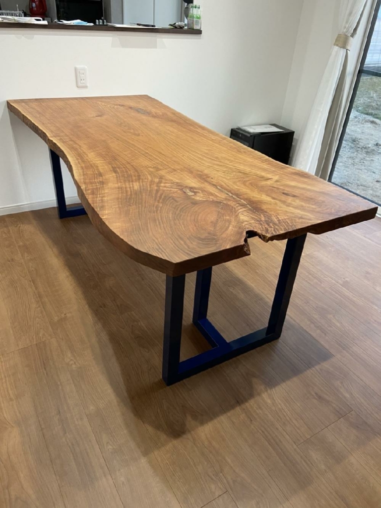 川西市に栃の一枚板と32角アイアン脚をお届けしました^ ^