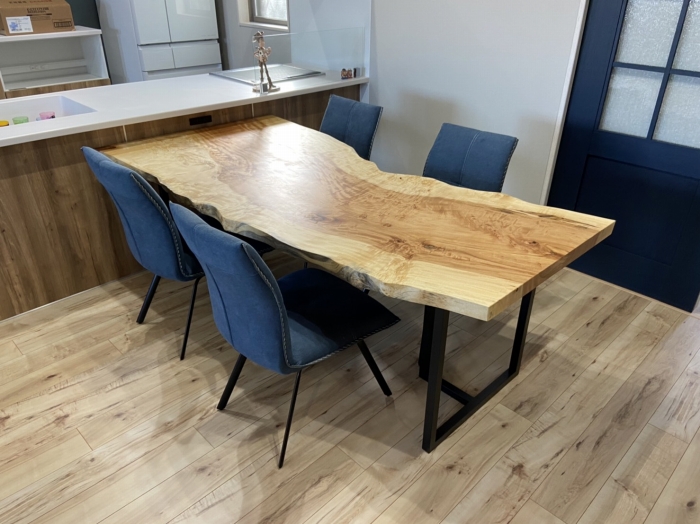 大阪阿倍野区に栃の一枚板ダイニングテーブルとダイニングチェアx4脚お届けしました^ ^