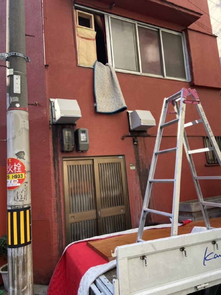 二階の吊り上げですが窓を塞いでいて入れる事が出来ないどうしようと思っていたら