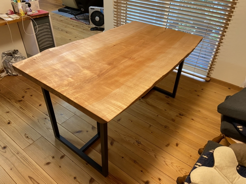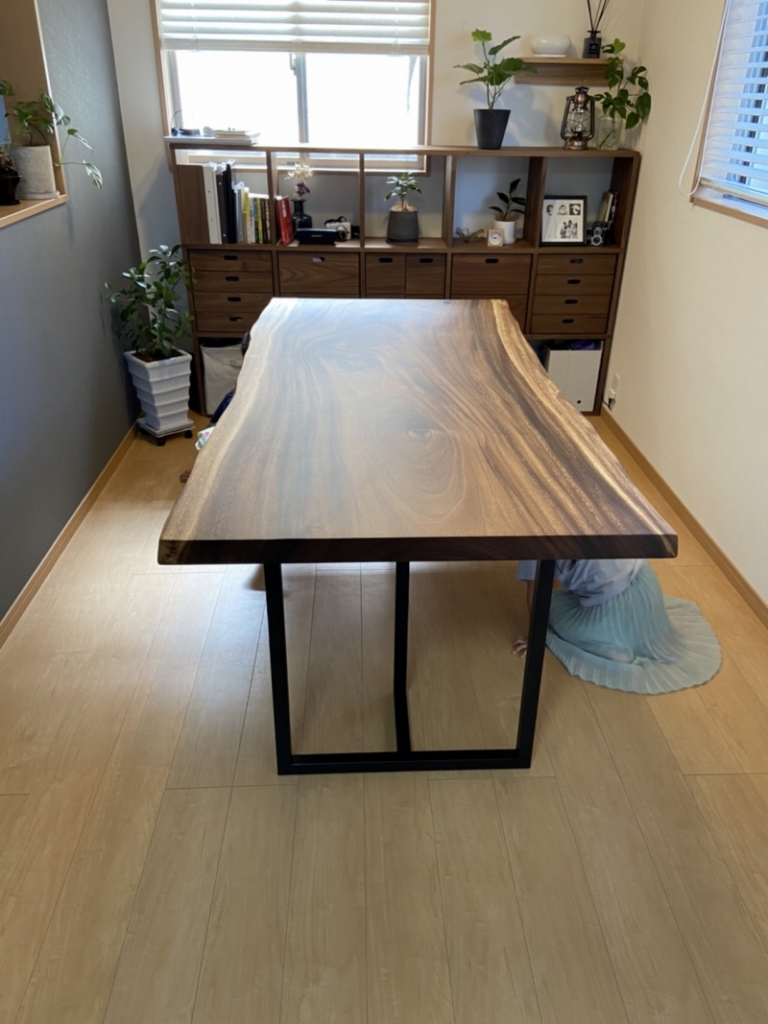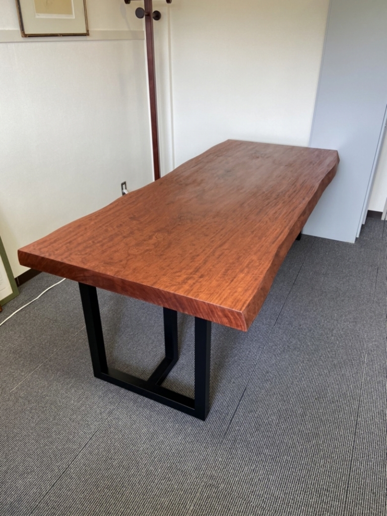 奈良の大和郡山市にケヤキ一枚板と梨地塗装のアイアン脚をお届けしました^ ^