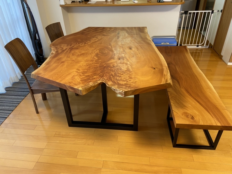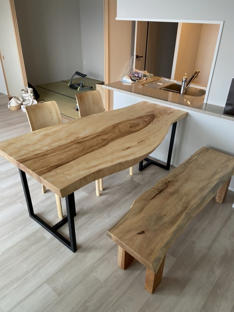 明石市に栃一枚板のダイニングテーブル用天板とベンチをお届けしました^ ^