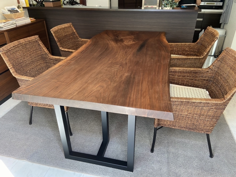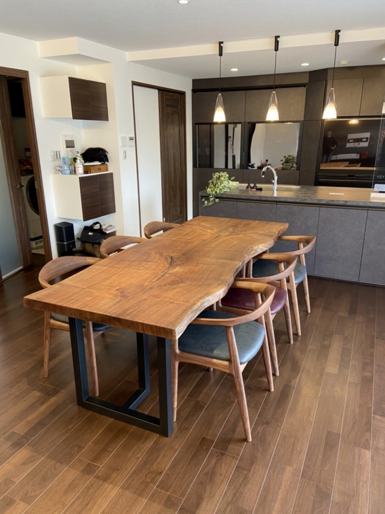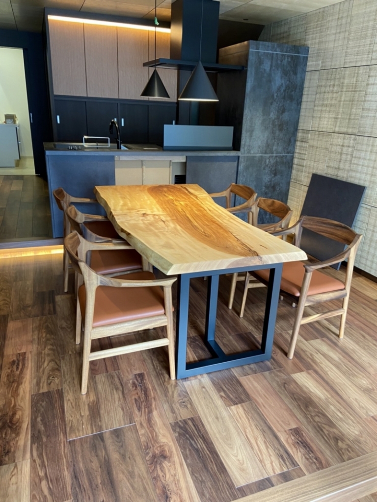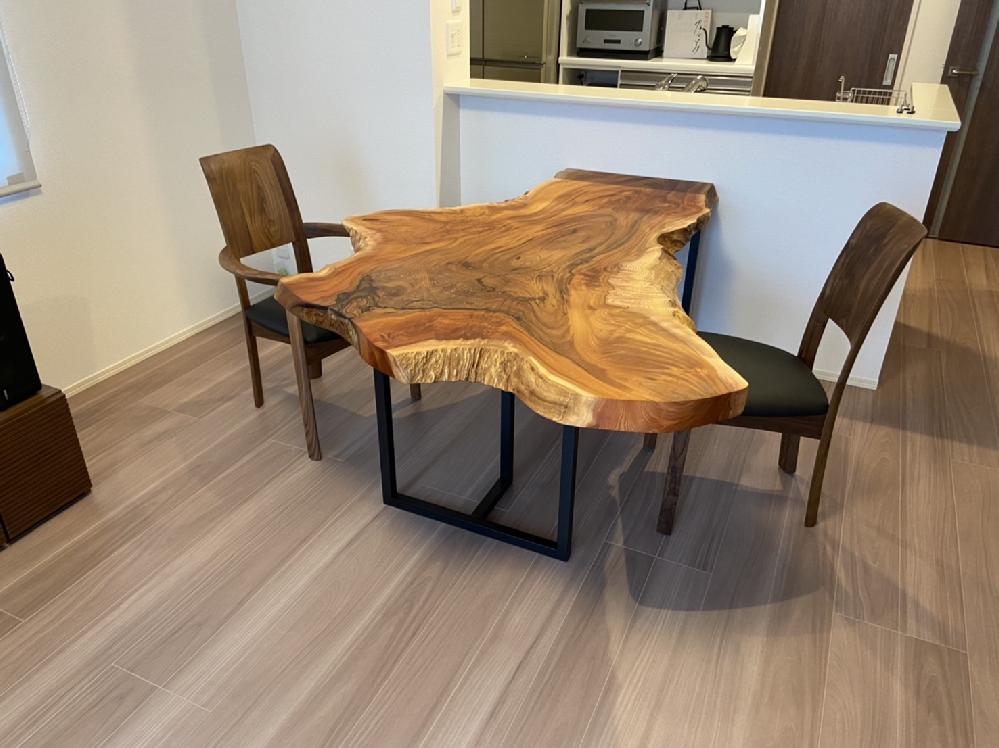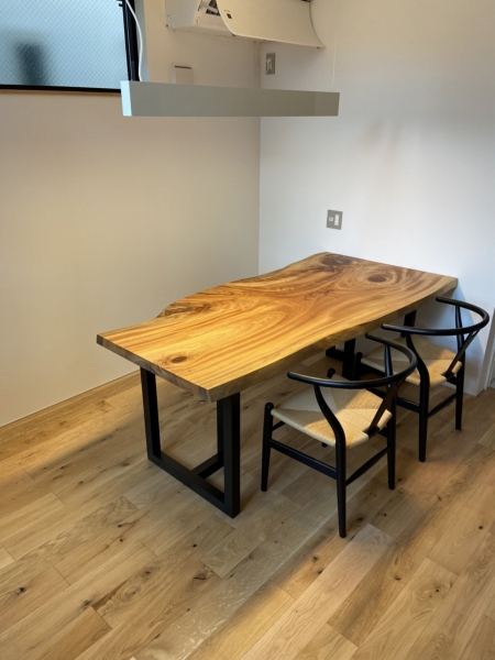 住吉区に栃の一枚板と脚、ブラックチェリーのチェアをお届けしました^ ^