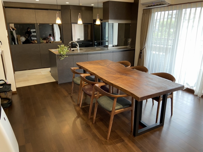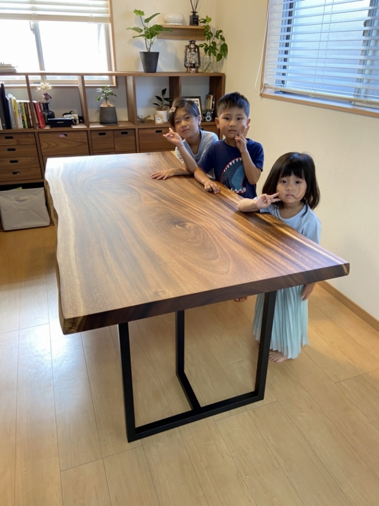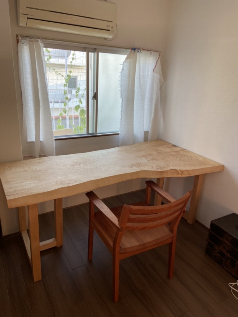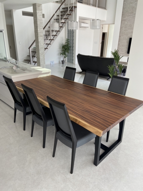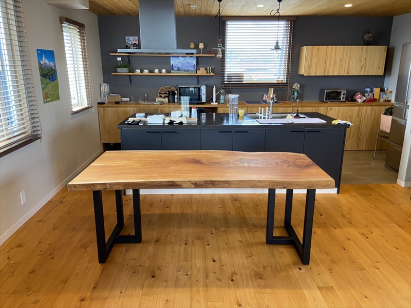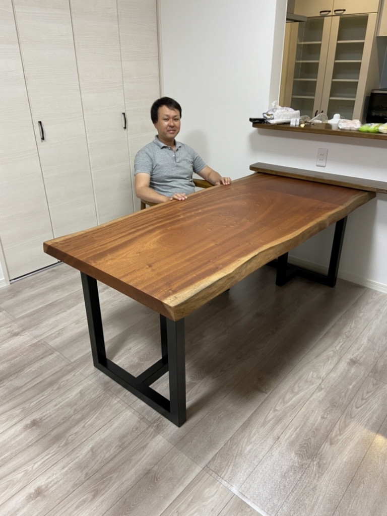 住吉区に栃の一枚板と脚、ブラックチェリーのチェアをお届けしました^ ^