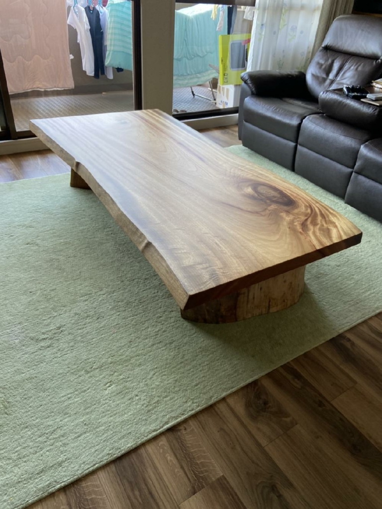 本日は大阪市住之江区に座卓として楠の一枚板と欅の切り株脚をお届けしました^ ^