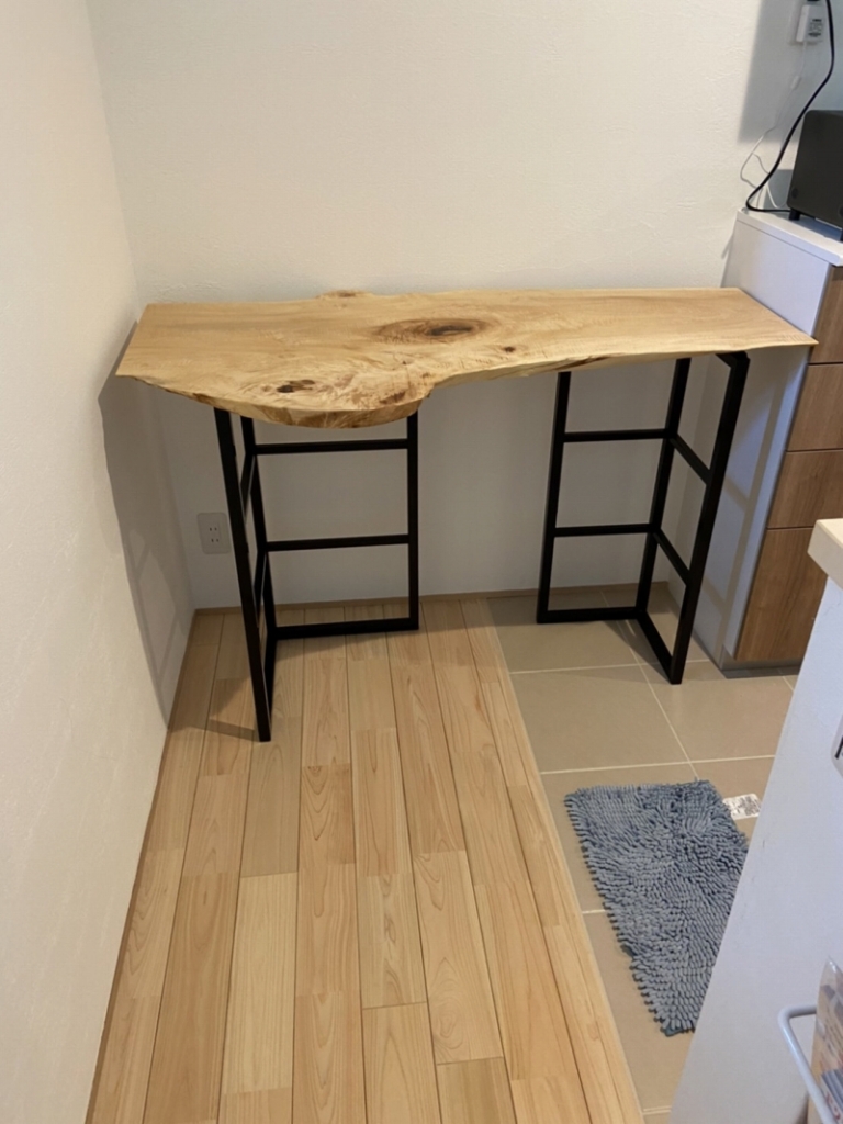 高槻市へ楓の一枚板と32角のアイアン脚をお届け^ ^