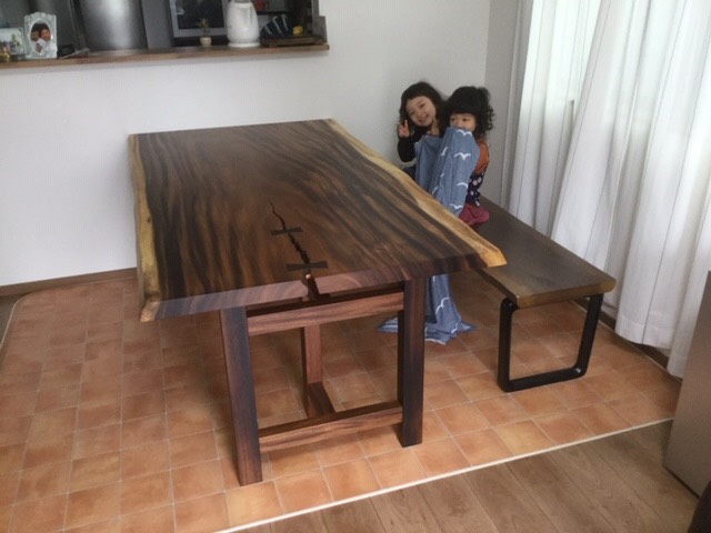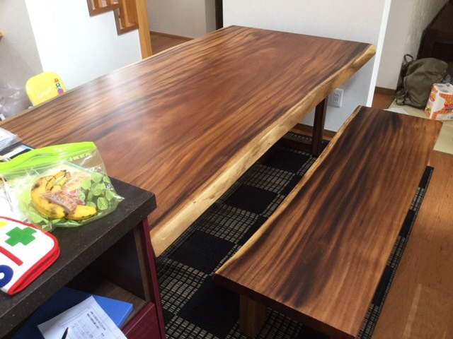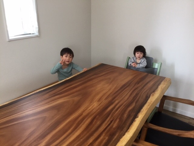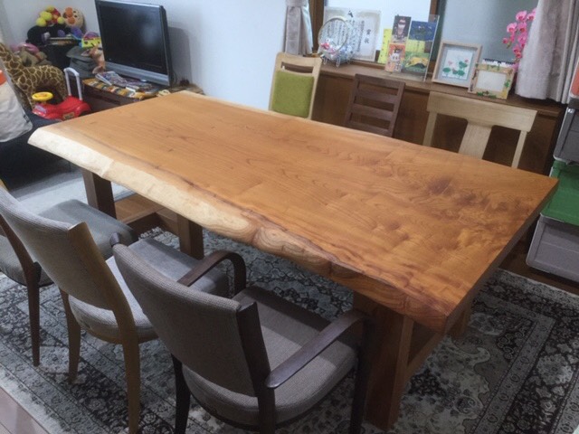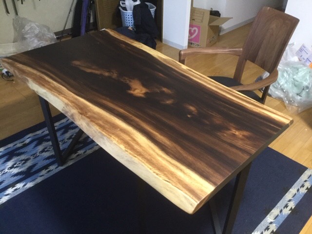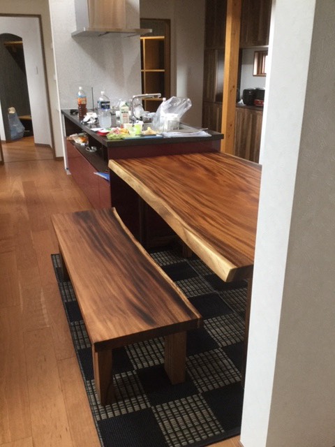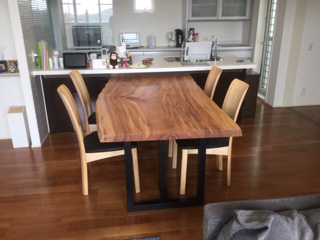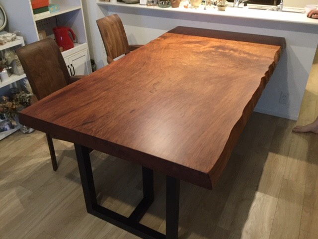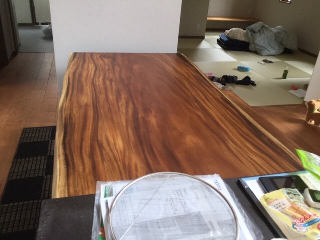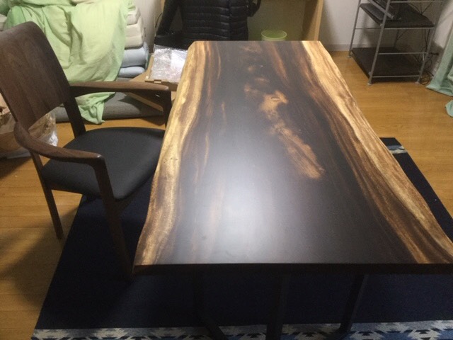 1800オーバーの一枚板をお届けしました^^ 去年の夏に買われて 新築が出来るまでお預かりしていました やはり買って良かったとお二人共に言って頂き 私も満足です^^
