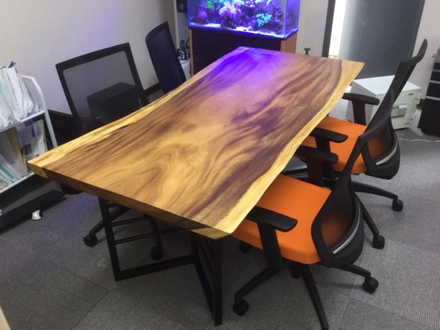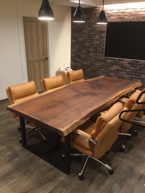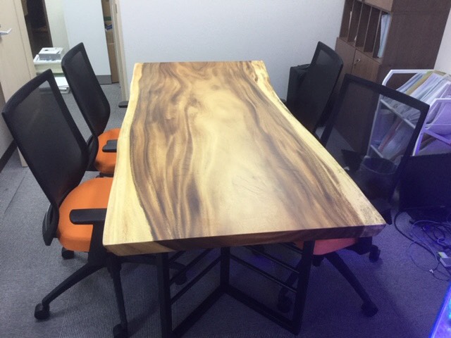 第2会議室も買い替えで1800幅のモンキーポットの一枚板
