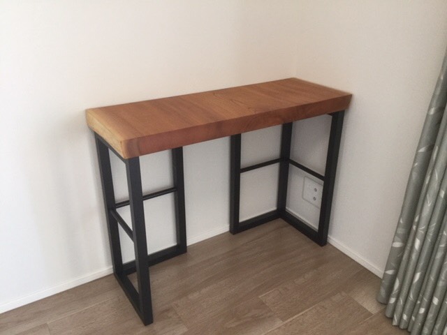 ベンチも木目の綺麗なものを選び、一枚板と同じアイアンの脚、しかもどちらも梨地で合わせてお造りさせて頂きました(^^)