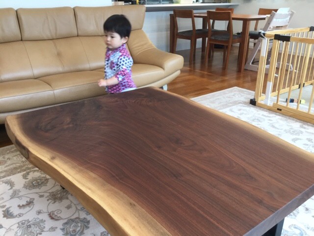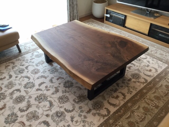 センターテーブルにとウォールナットの一枚板をお届けしました