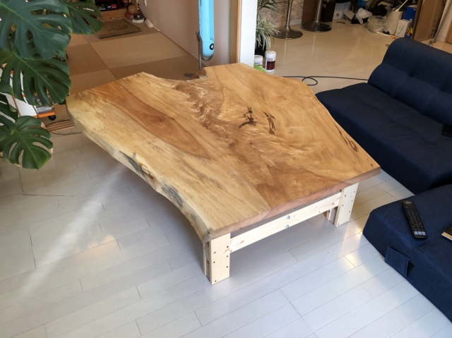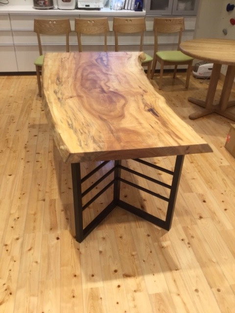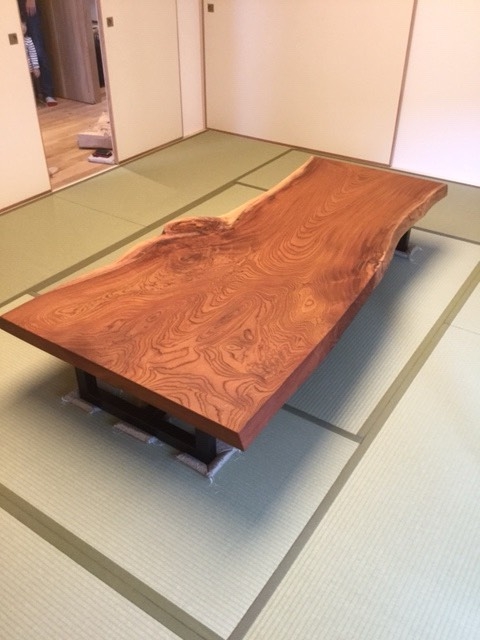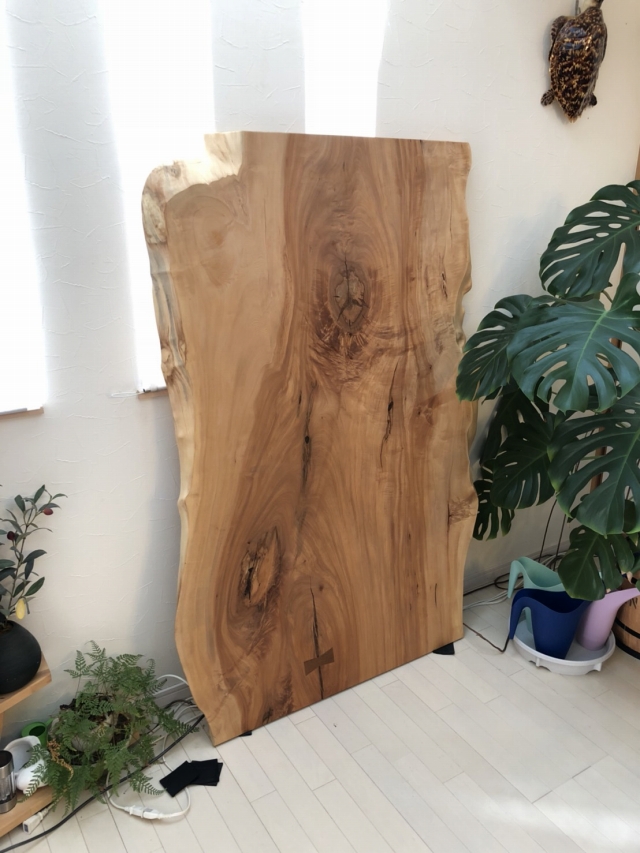 この変形で巾の細いケヤキの一枚板をすぐに気に入って頂きました^_^