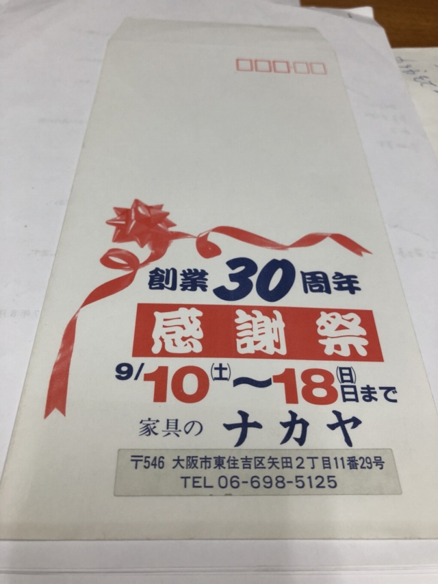 創業30周年って今年54年目なので24年前の封筒です