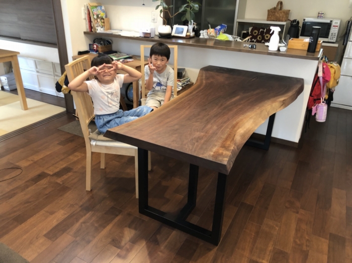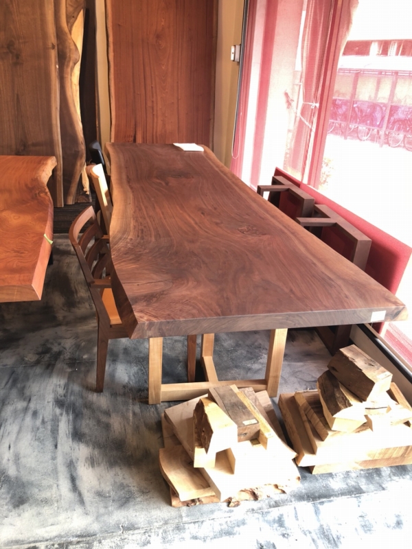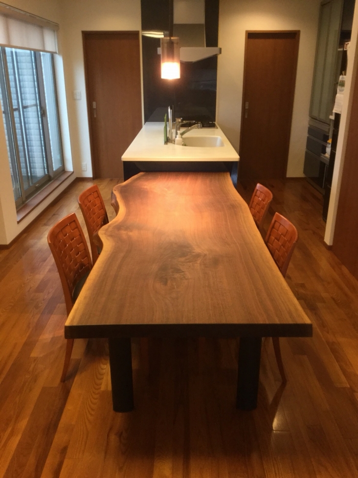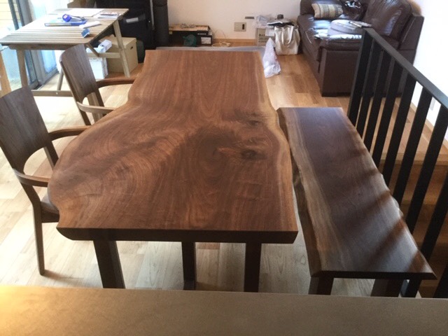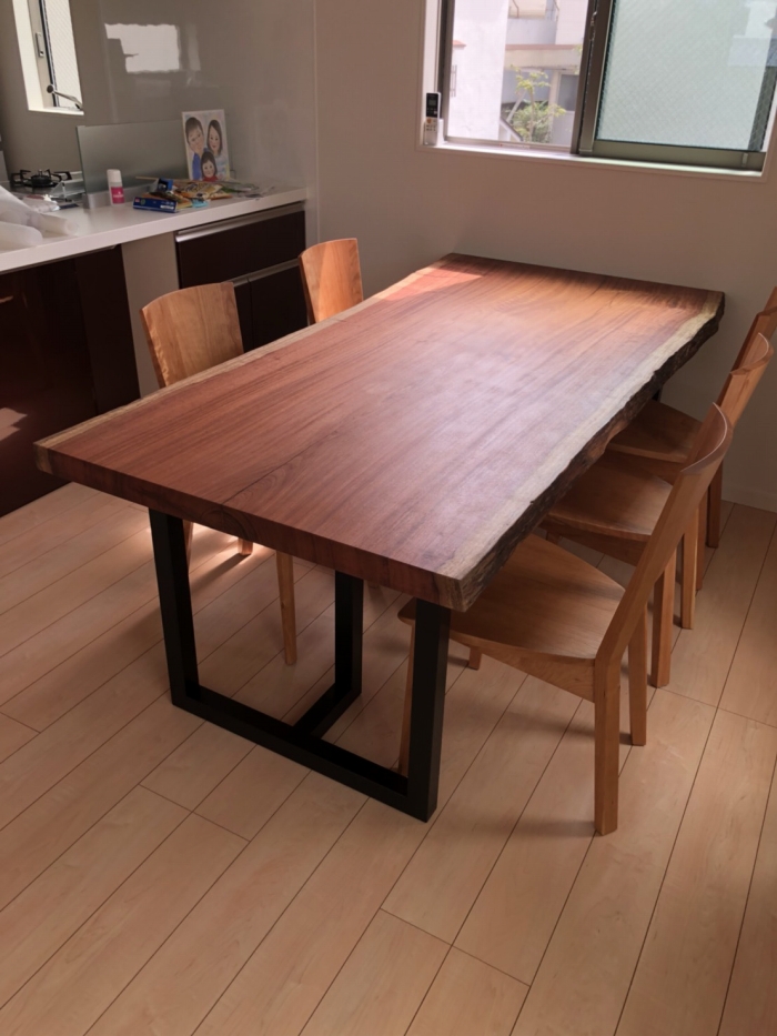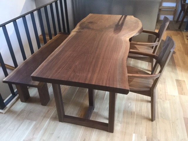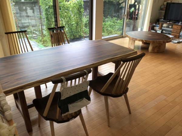 昨日の配送の方は一枚板の天板、脚、ダイニングチェア、ベンチと全てアメリカンウォールナットで揃えました