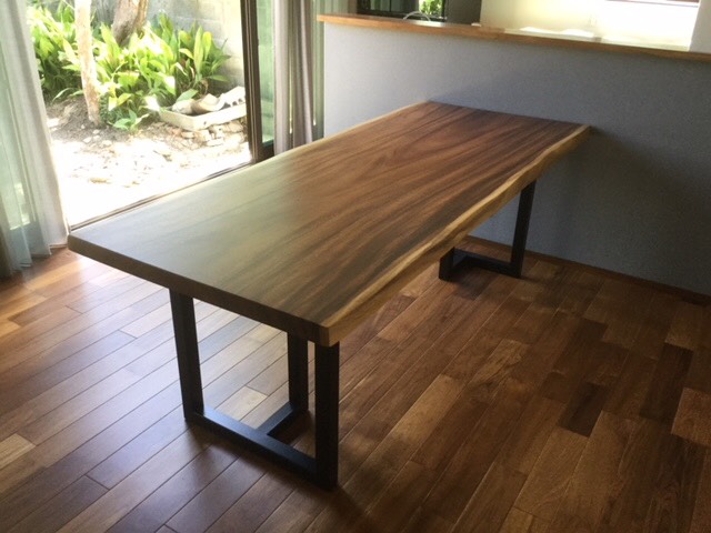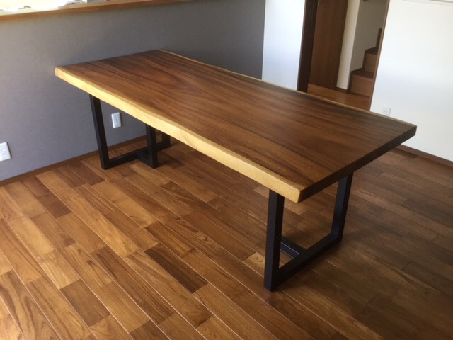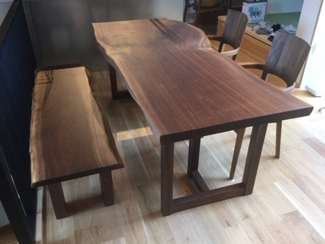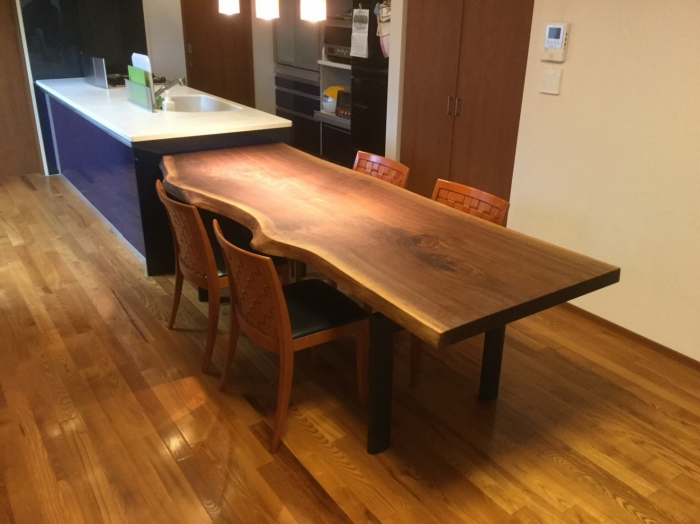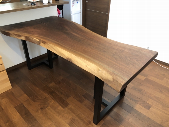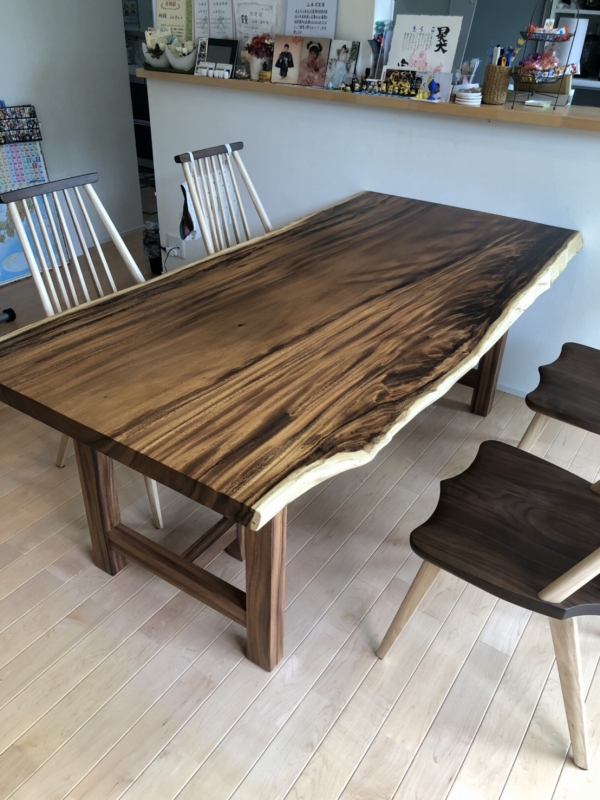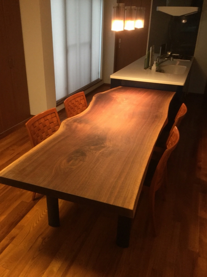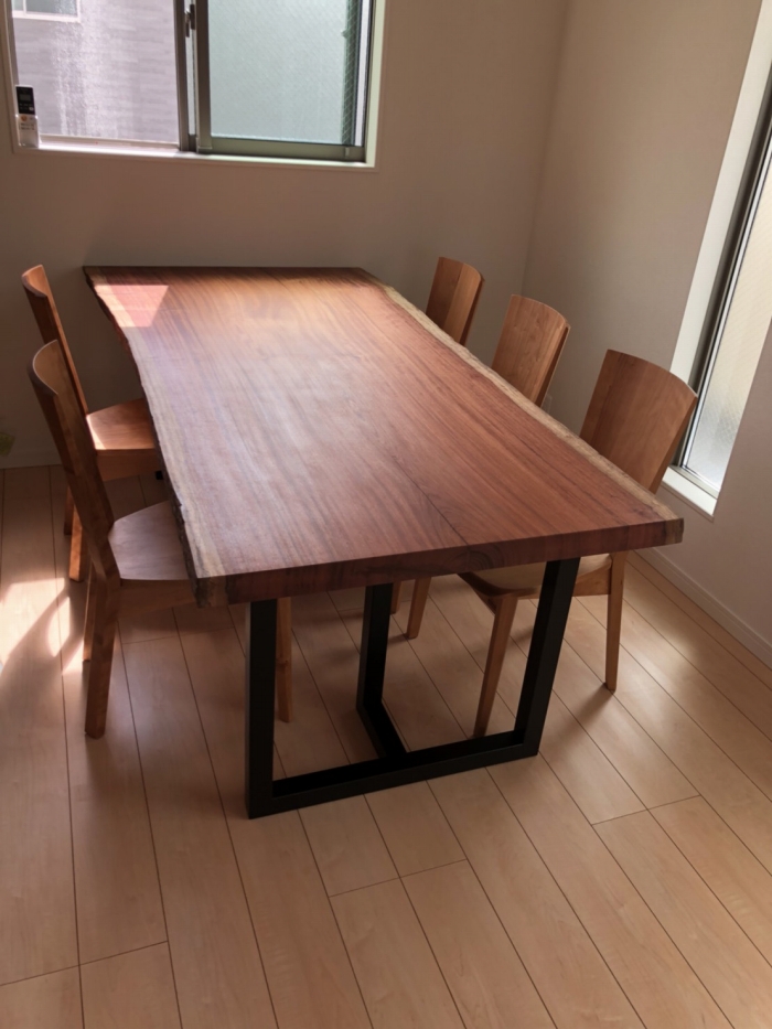 昨日の配送の方は一枚板の天板、脚、ダイニングチェア、ベンチと全てアメリカンウォールナットで揃えました