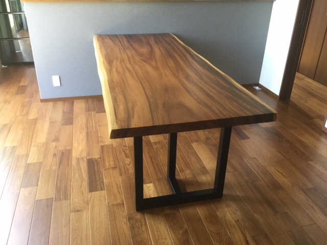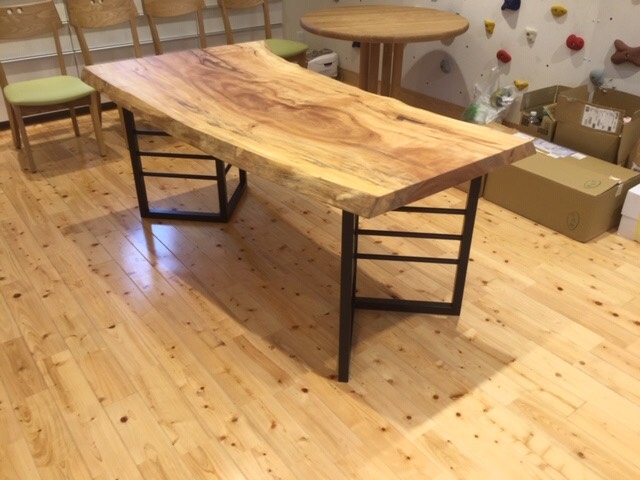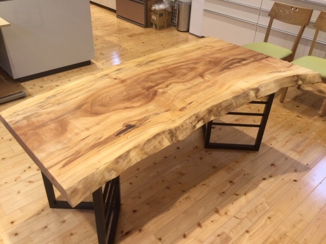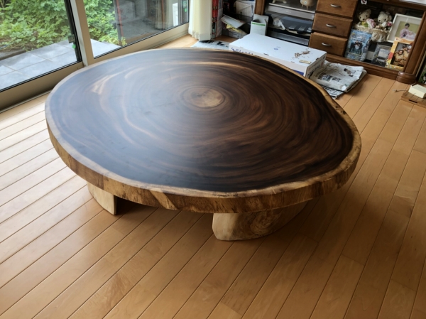 本日は朝一から1800超えダイニングテーブルと円卓のセンターテーブルをモンキーポットの一枚板でお届けしました(^^)