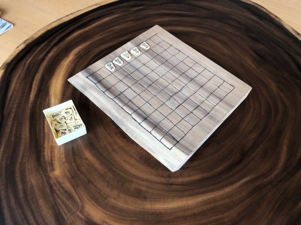 また、先日ご来店頂いた時にお子様にプレゼントしたモンキーの端材、それを綺麗にペーパーで研磨して将棋盤を造られてました。