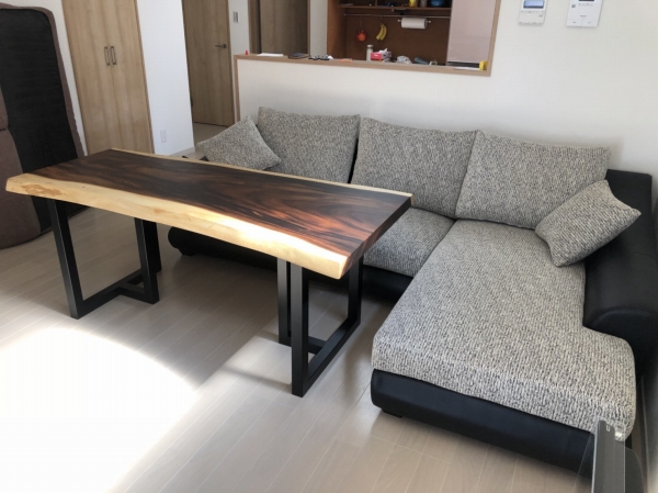 今回はL型ソファとモンキーの一枚板のテーブルセットをご購入頂いた方のお宅に配送です(^O^)/