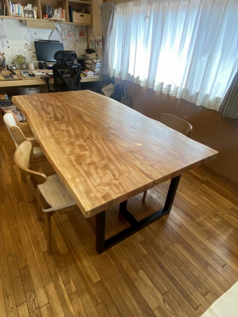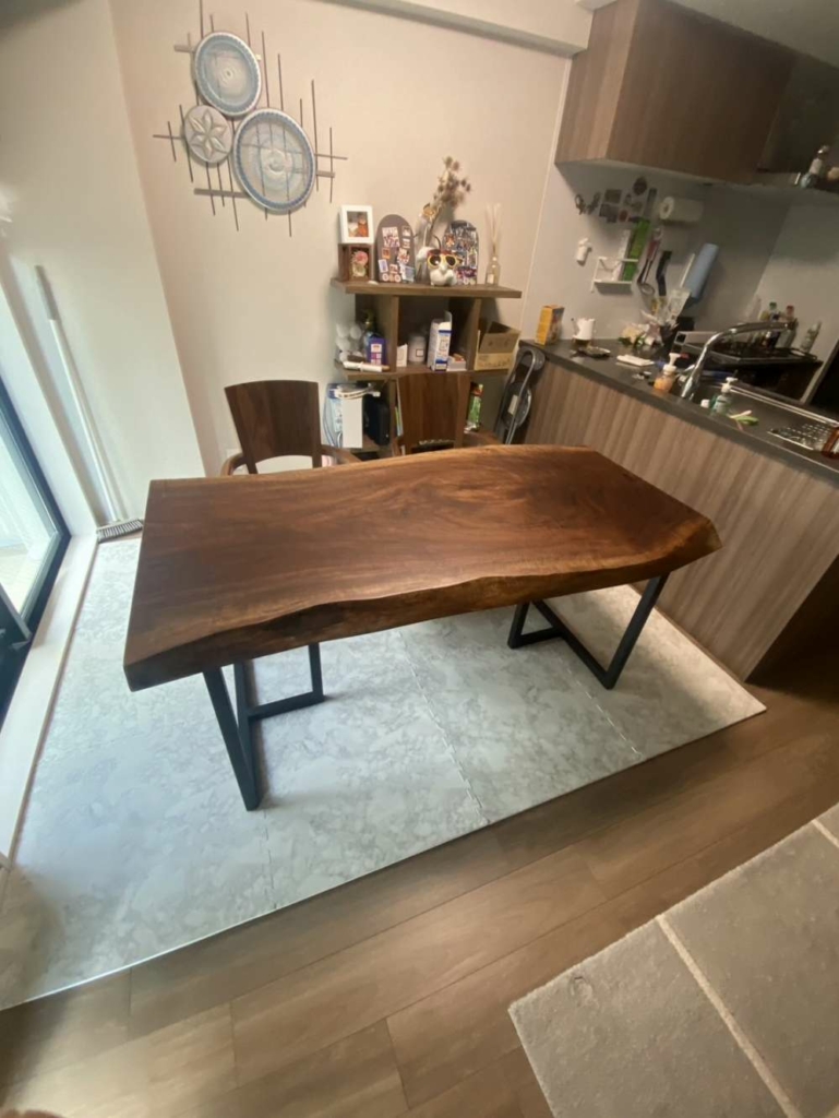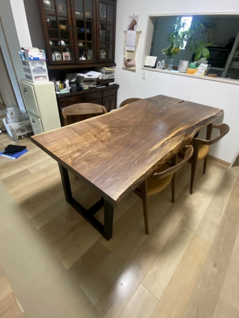 浦安市に栃の一枚板のダイニングテーブルをお届けしました^ ^