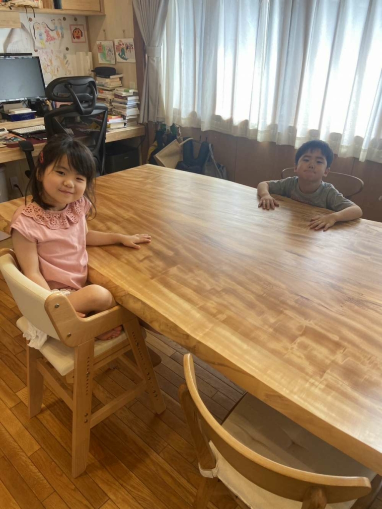 後、モンキーポット一枚板を二枚、子供用デスクにとご購入!