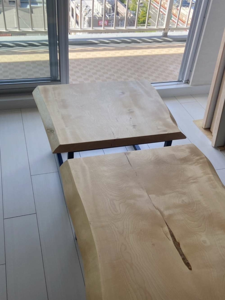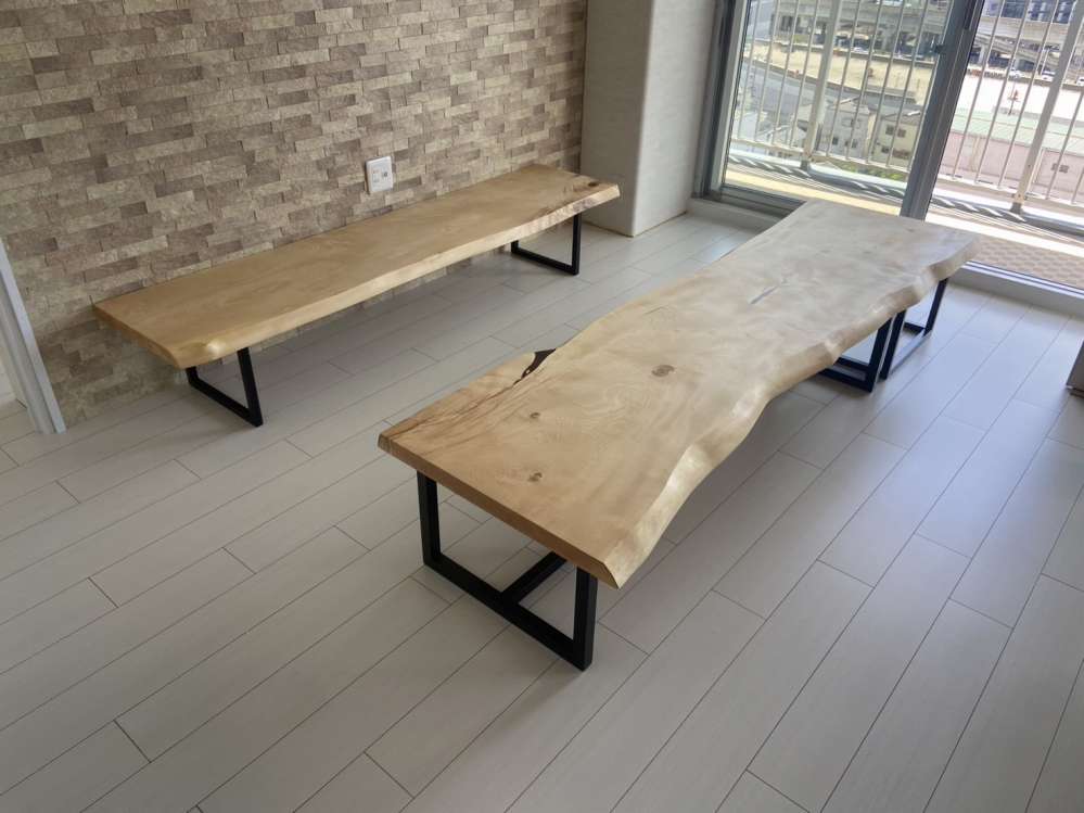 港区のお客様宅へ栃の一枚板ベンチを二台お届けしました^ ^