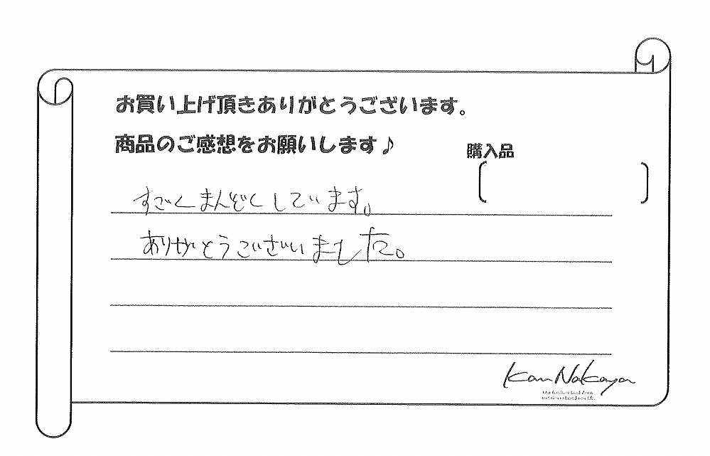 この度はありがとうございました。メールでご感想を頂きありがとうございます。