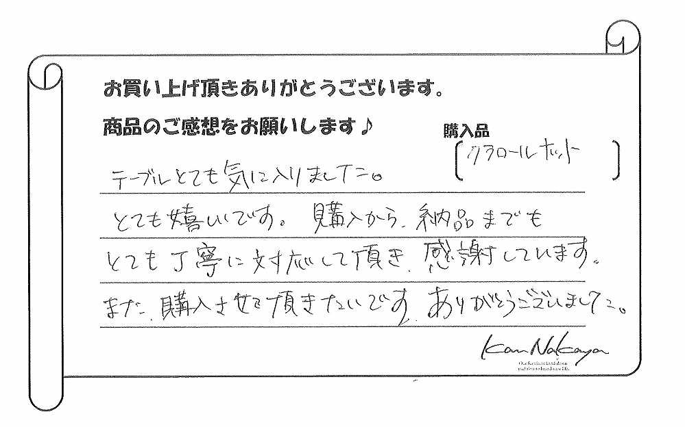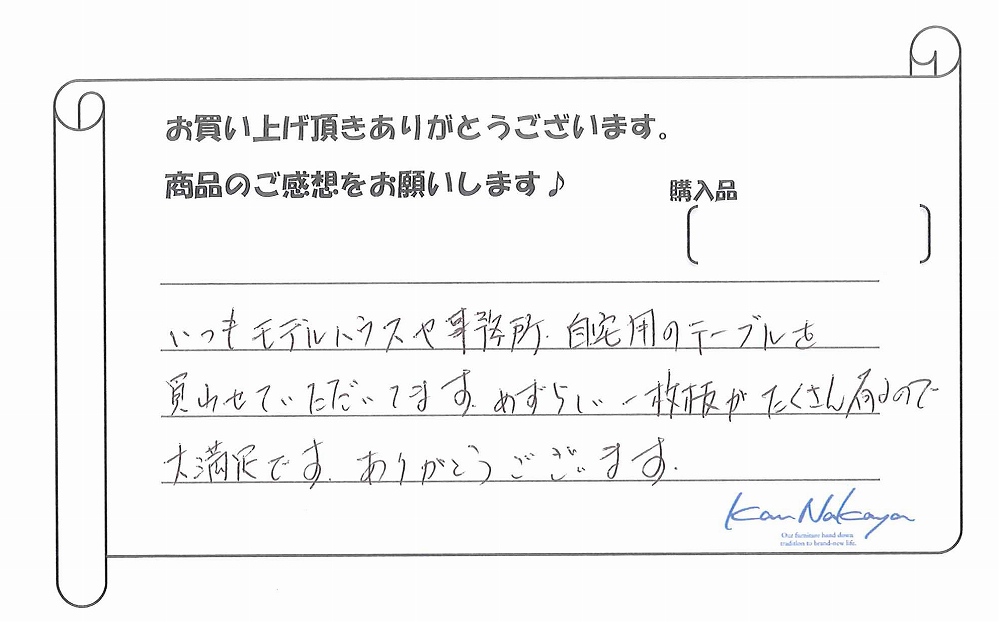 『いつもモデルハウスや事務所、自宅用のテーブルを買わせて頂いてます。