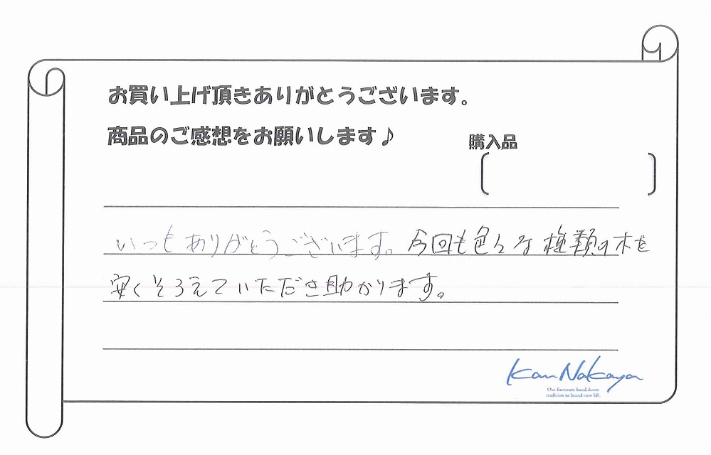 今回も色んな種類の木を安くそろえていただき助かります。』
